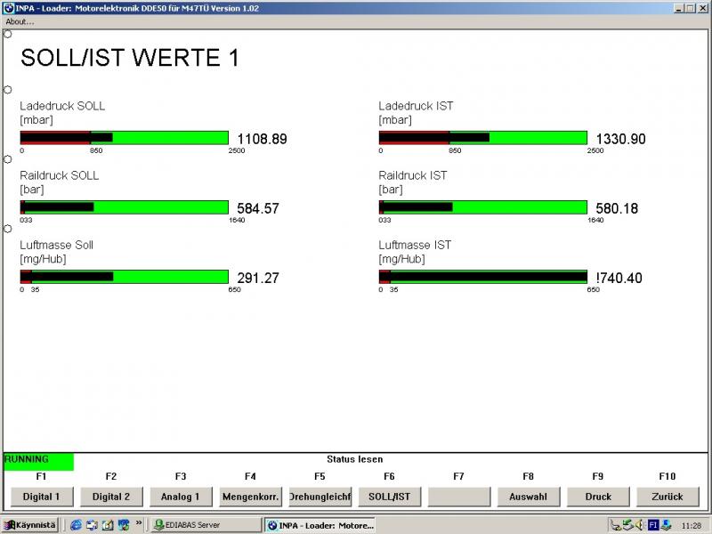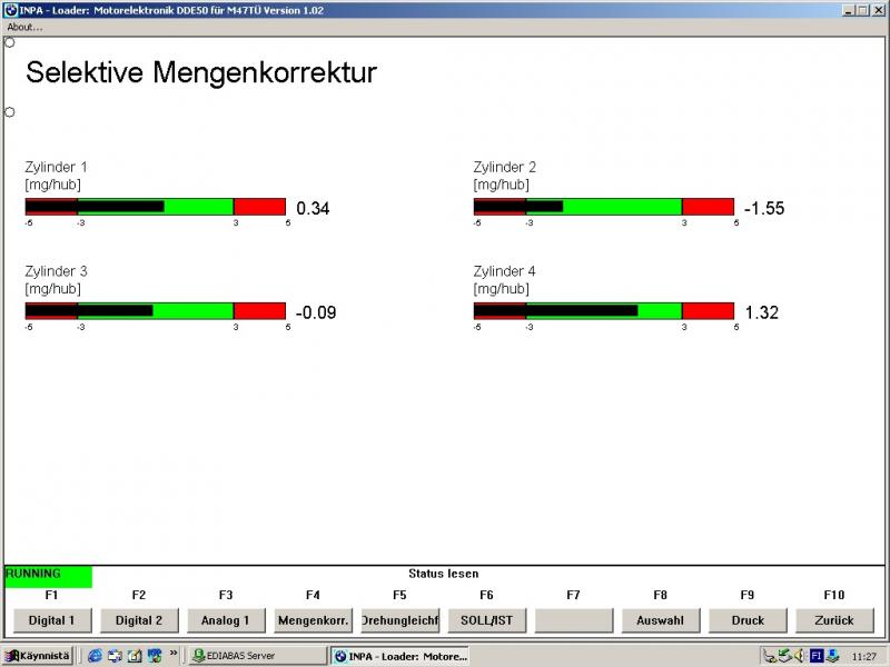 Tuollaiset yli +-2 korjausarvot edellyttää jo uutta suutinta tai huoltoa, valitettavasti.Originally posted by Bringer00 View PostTässä ois inpan antamia arvoja. Eli ongelma se että auton turbo vislaa ja lievää nakutusta kuultavissa. Sen verran imuvuotoja tutkittu että meni uus cuuleri tilaukseen. Mitäs ootte suuttimista mieltä? Kuva siis tyhjäkäynnillä. Suutinten korjausarvot meni ajossa 2 suuttimella yli -5:en ja 4 suuttimella yli +5:en. 1 ja 3 suuttimet pysyivät lähellä nollaa.