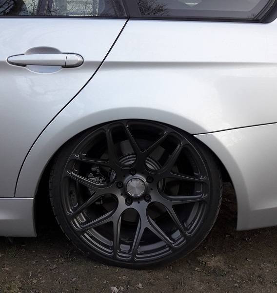 Renkaan todellisesta leveydestä riippuen 0-10mm spacerit.