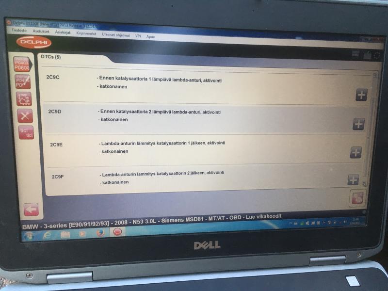 katsastus lähestyy ja ajovalopesurien teleskooppisuuttimet on uusittu. Samalla laitoin sulakkeen nro 48 paikoilleen. Pesuri lähti pelittämään mutta moottorin merkkivalo syttyi. Luin vikakoodit, liitteen kuvassa näkyy koodit. Merkkivalo ei syty kun sulake ei ole paikallaan, mutta kun sen laittaa paikalleen syttyy valo.