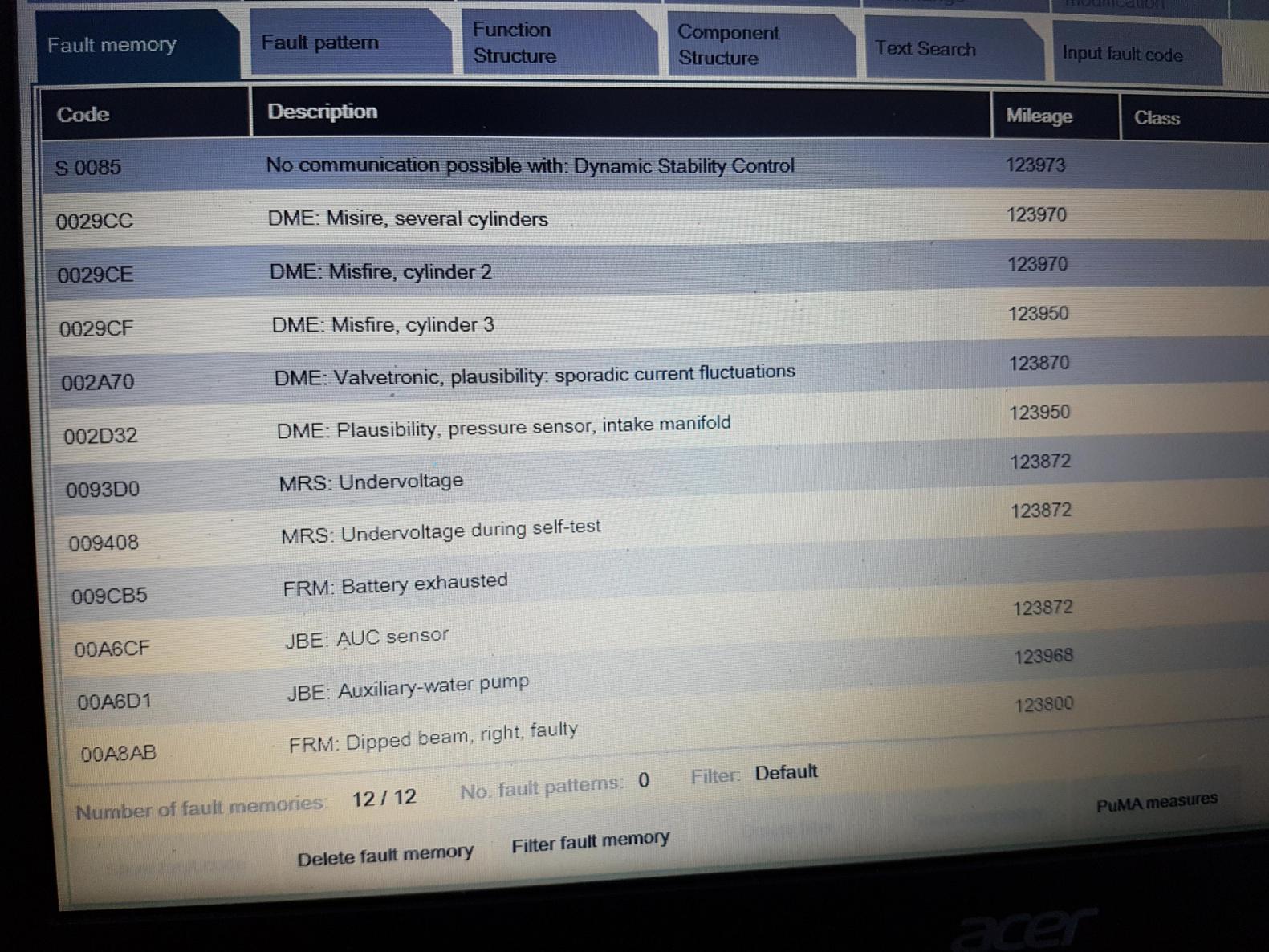 Kävin luetuttamassa auto tietokoneen ihan aidolla BMW-lukijalla ja sain oheisen raportin.