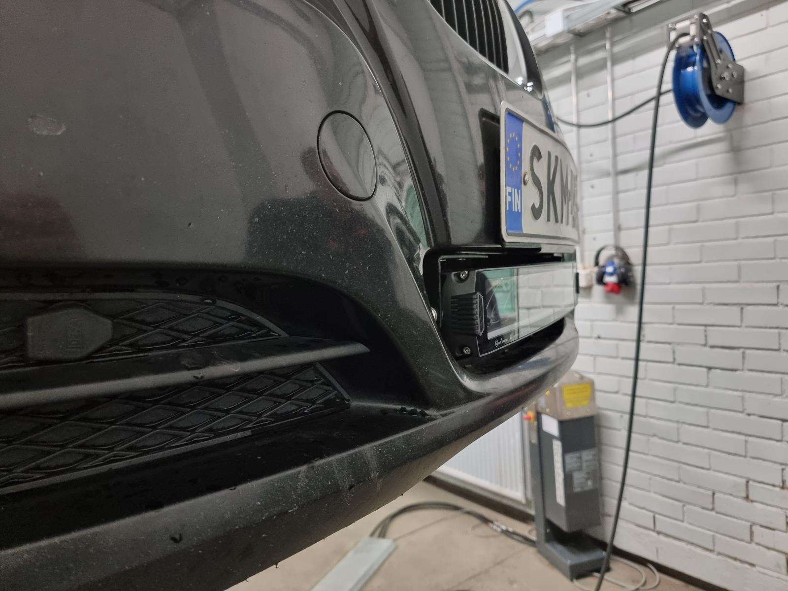 Nyt sitten pitää miettiä asennusta rekisterikilven taakse niin että valo tulee sen alapuolelle. Yläpuolella kun on ne parkkitutkat.