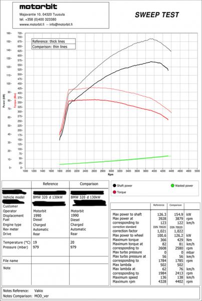 Liitteenä esimerkki BMW E46 320d 110kW (150hv) "facelift" ohjelmoinnista. Vääntöä voidaan tarvittaessa rajoittaa esim. 380Nm paikkeille.