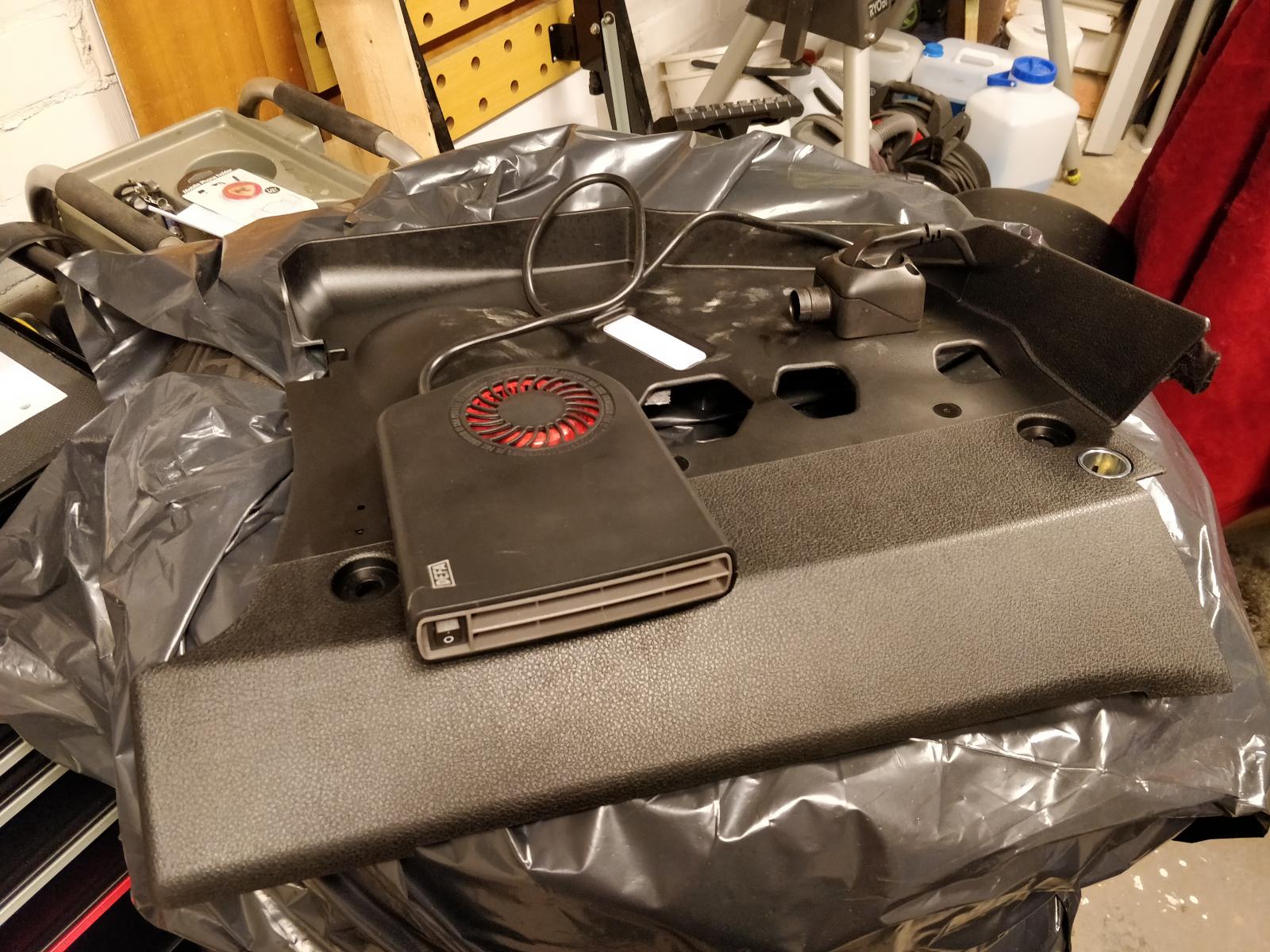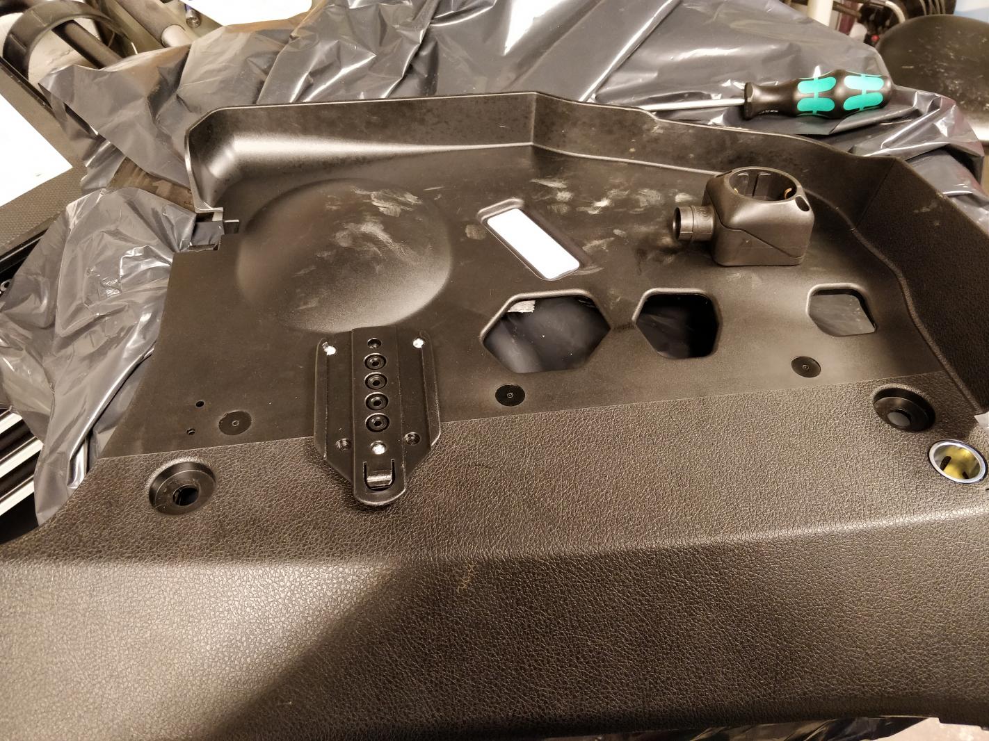 Löytyi muutama kuva asennuksesta. Kiinnikkeen takareunaan laitoin muistaakseni muutaman korokepalan. Jäi tosiaan aika paljonkin näkyville tuon pullistuman takia, vielä ei kuitenkaan kukaan ole onnistunut lämmitintä potkaisemaan irti.