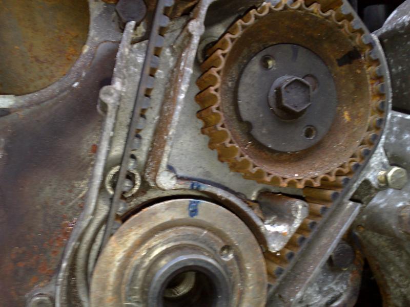 Eli, jos näiden kuvien mukaan laittaa kampiakselin ja nokka-akselin merkit "kohdalleen", niin moottorituho on satavarma.Last edited by T3; 04-01-2012, 11:24..