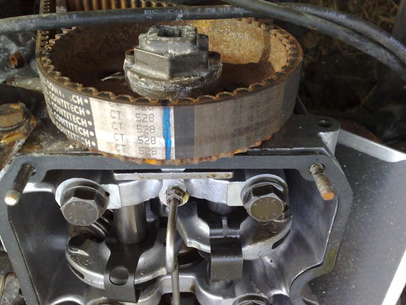 Eli, jos näiden kuvien mukaan laittaa kampiakselin ja nokka-akselin merkit "kohdalleen", niin moottorituho on satavarma.
