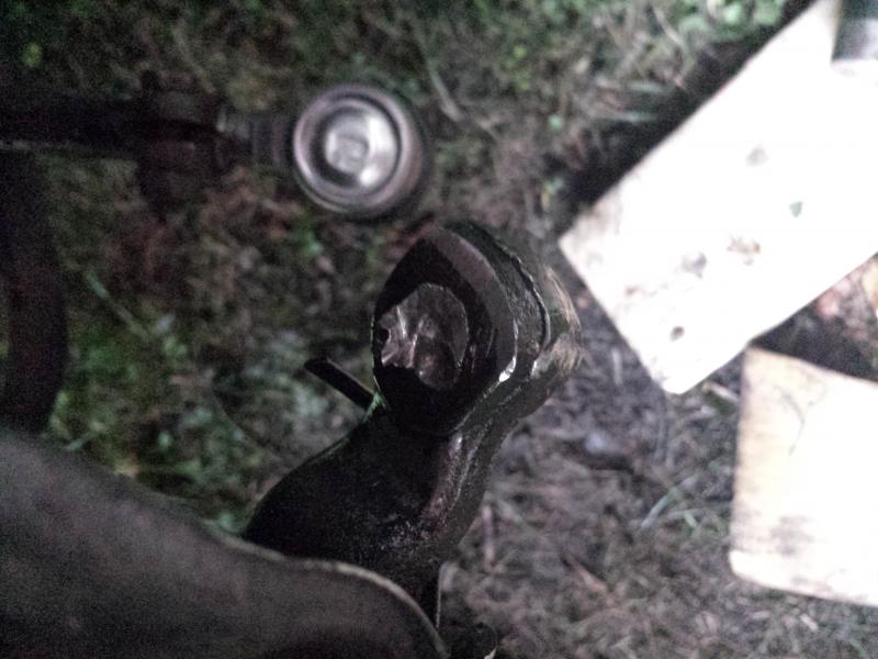 Ekana just tolla haarukalla koitin ja sit ulosvetäjällä mutta seki meni kahteen osaan... ja sit napsahti pultti poikki. Pitänee varmaan kiikuttaa johonki pajalle tuo osa
