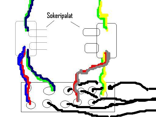 Jees, hyvä että täällä jaksetaan tällästä tolloakin auttaa. Kytkin tosiaan ekalla kertaa väärin, nythän se valomuisti pelaa noilla ohjeilla.