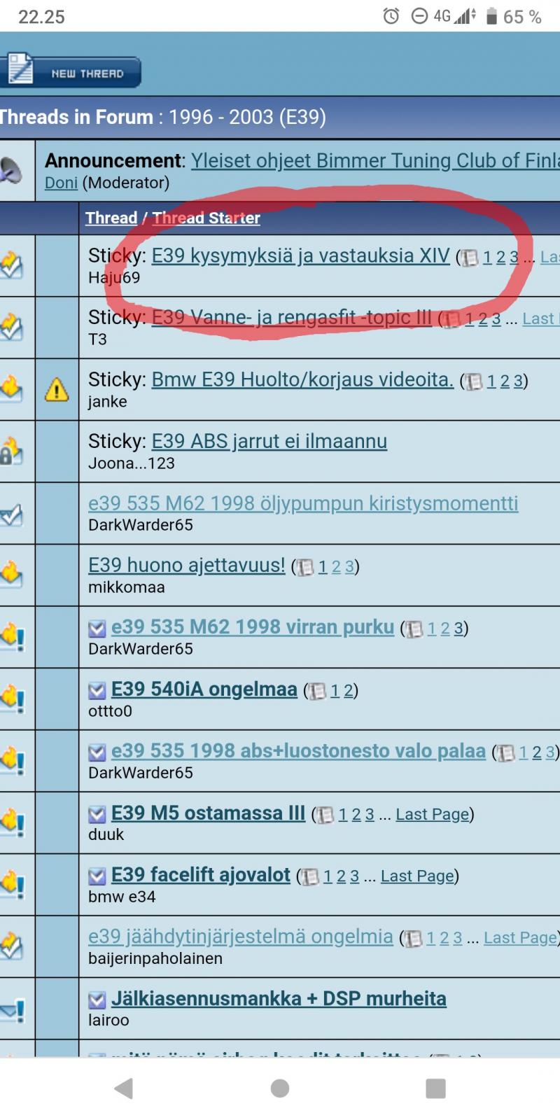 Edit: Kannattaa tutustua myös forumin FAQ osastoon, sieltä löytyy myös E39 osio erikseen.