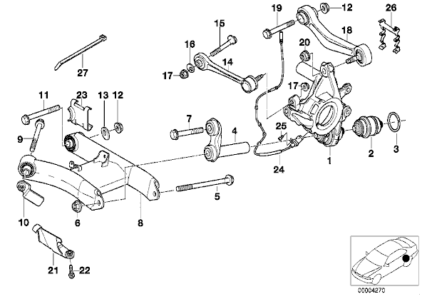 Eli siis alatukivarsi edessä on osa nro 11 ( wishbone )? Reaktiotanko edessä nro 4 ( tension strut )? Poikittainen takatukivarsi takana on osa nro 18 ( wishbone )? Menikö oikein?