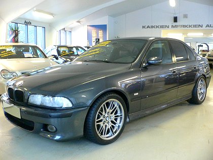 Tässä met.tummansinisessä BMW:ssä on varusteena mm. kauko-ohjattava keskuslukitus, sähkölasit + -peilit, 18" M5-alumiinivanteet, ilmastointi, nahkaverhoilu, BMW Hifi-keskus (TV, Navi, CD-Box, 16:9 värinäyttö), Xenon-valot, Alu Decor -listat, Sport-penkit sähkösäädöllä ja muistilla, M5 -monitoimiratti, parkkitutkat, ASC-luistonesto, sadetunnistin, ABS, vakionopeudensäädin, lämmitettävät istuimet, Airbagit, BMW-hälytin, M5-korisarja, autotallin kauko-ohjain... Huoltokirja!
