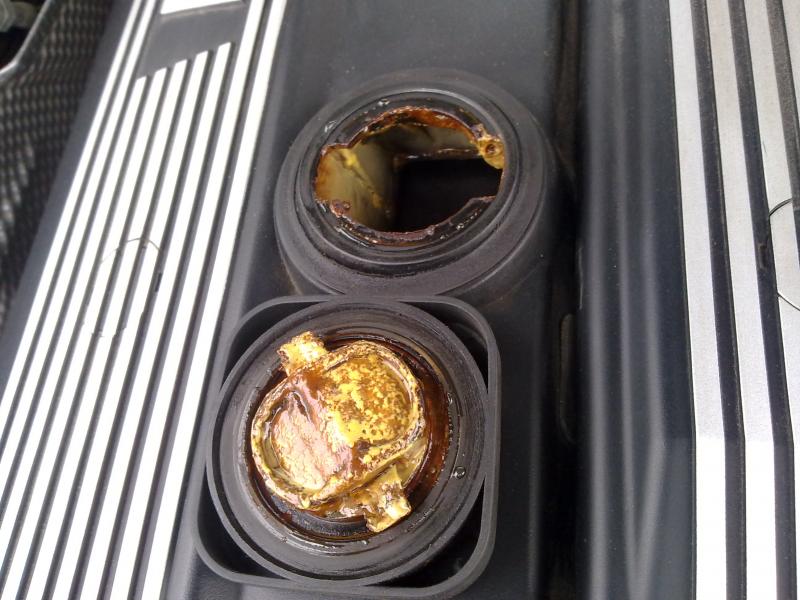 Siis jos sulla on vielä M54 niin tuskin on kansi mennyt. Miksi lisäsit kone käynnissä? Se järjestelmä on paineen puolella reippaasti, saat äkkiä nesteet kynsille sieltä :think