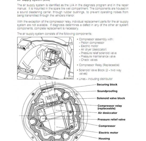 Bemarissa vuotavan ilmajousituksen puolen huomaa kun auto nostetaan ylös. Sen puolen pussi vuotaa jonka rengas vetäytyy ylös eli nostaa kinttuaan ihan kuin uros koira. Vaikka pussi näyttää ehjältä niin se voi vuotaa juuri yläpään lautasesta "vulganoinnista". Jos kumpuralta vuotaisi niin kummatkin puolet "nostaisi kinttua". Kompurassa ei ole erillistä piiriä oikean ja vasemman puolen jousitukselle.