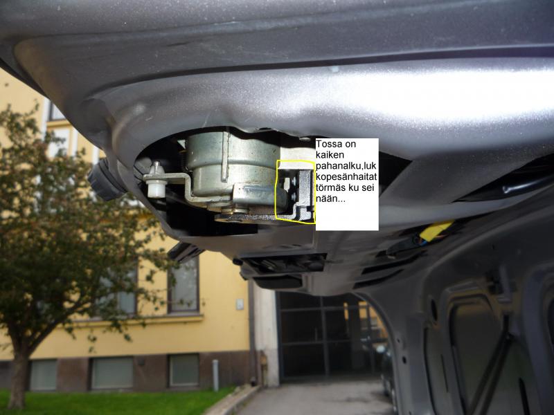 Joten tarvisin varman tiedon ja vaikka kuvia siitä että takaluukku aukeaa avaimella vääntäen. Saan takaluukussa olevasta lukkopesästä keskuslukituksen kylläkin kiinni ja auki mutta kontti pysyy kiinni.