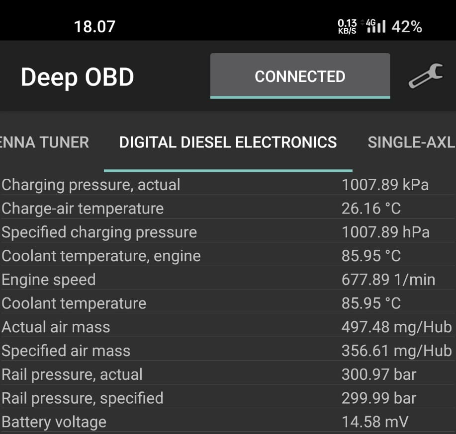 Liitteenä kolme kuvaruutukaappausta, yksi tyhjäkäynnillä ja loput ajossa.