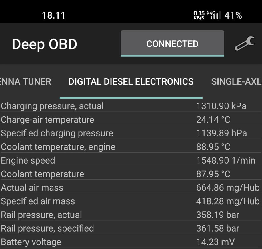 Syttyi moottorin häiriövalo ja koodi 3ff0 ilmamassamittarilta. Kuinka paljon pyynti ja toteutunut ilmamassa eroaa jos kaikki kunnossa. Auto ohjelmoitu eikä saastelaitteita paikallaan. 2004vm m57 3l
