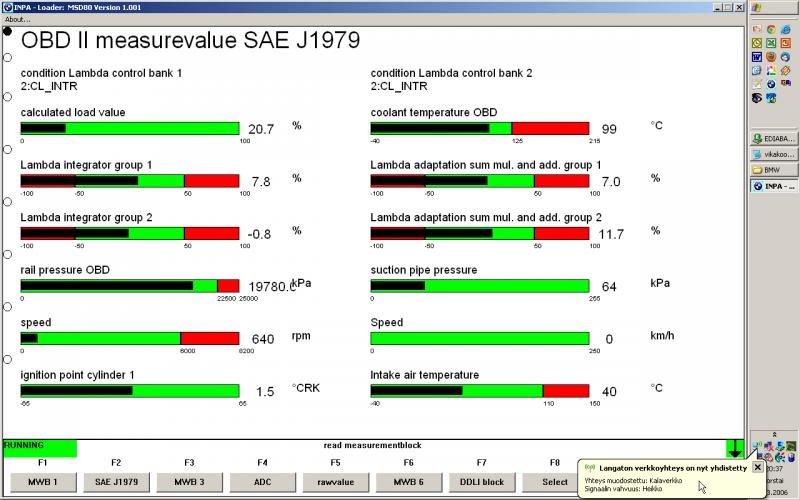- cylinder rough running arvoissa (-0.5 ja +0.5 välillä huojuntaa eri sylintereissä)
