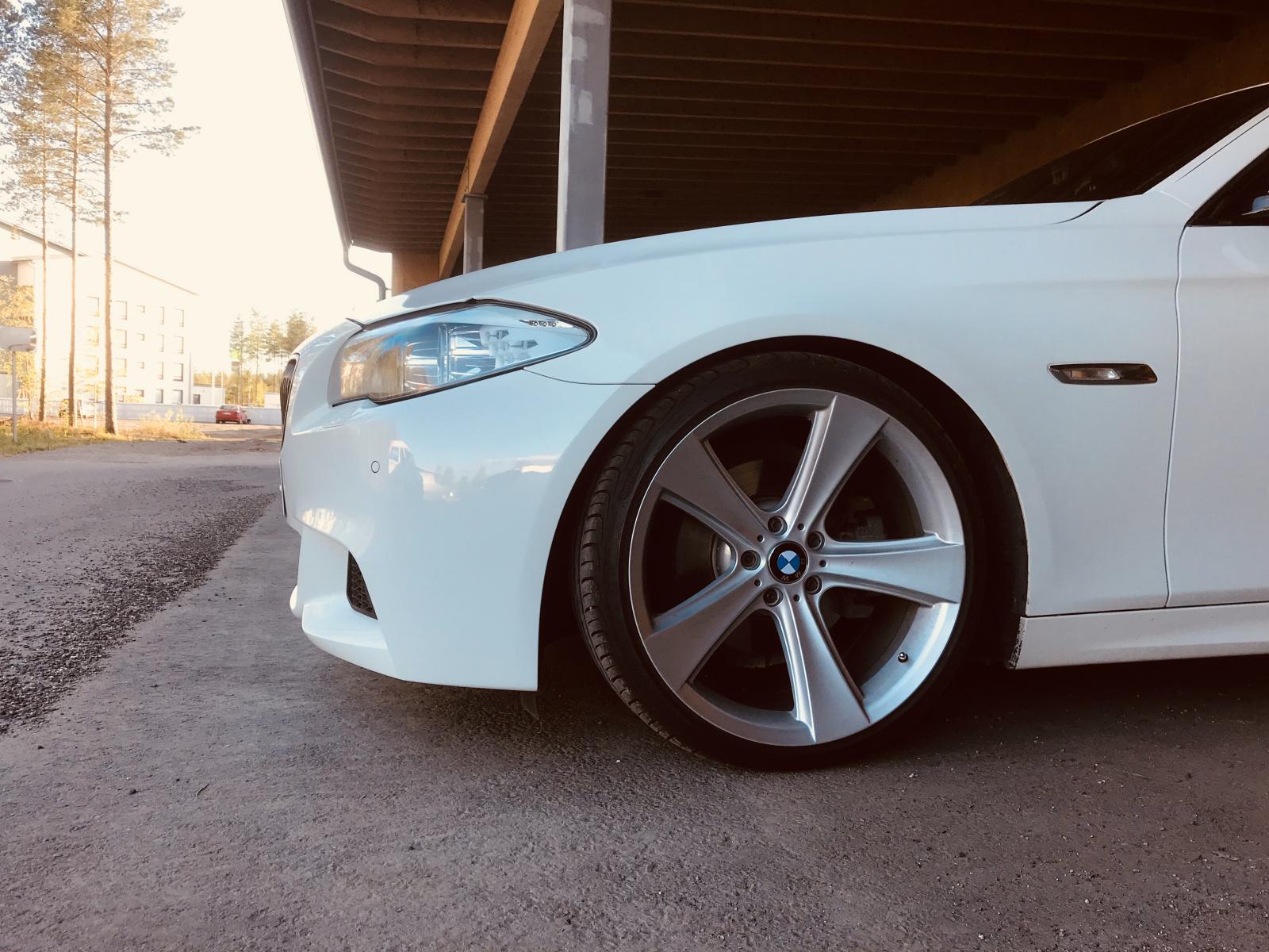 Tuli ostettua 2014 vuoden f10 520d. M-sport alustalla rullannut tehtaalta pihalle ja omaan silmään vielä vähän turhan korkea. Todennäköisesti päädyn eibachin -30mm tai h&r :n -35mm jousiin.