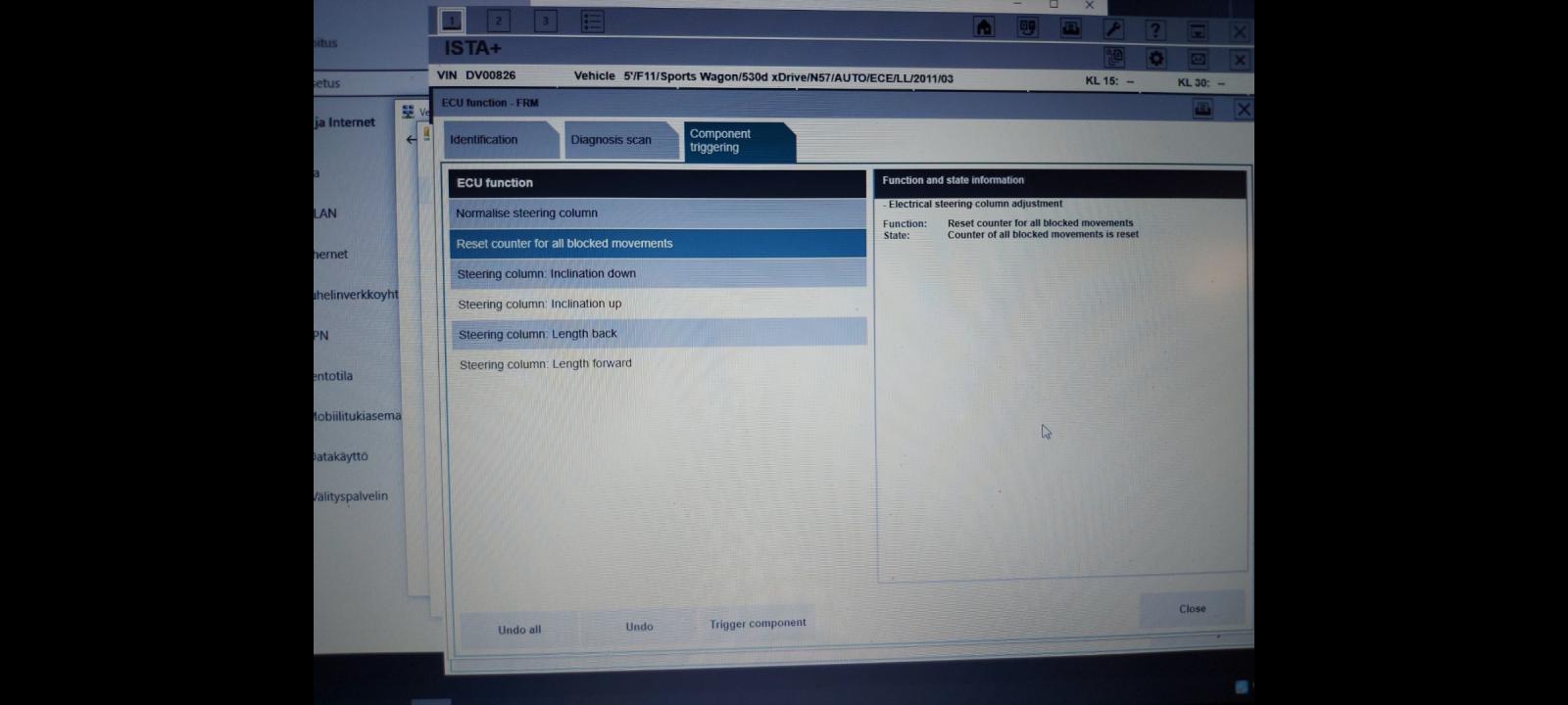 4. Valitse Reset counter for all blocked movements