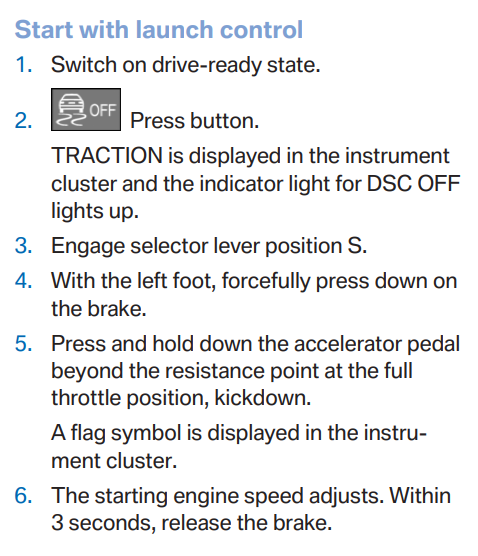 Originally posted by https://www.bimmerfest.com/threads/launch-control.1257980/Launch control is available when the engine is at operating temperature (uninterrupted journey of at least 10km)