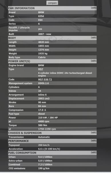 635D 2008 E64 convertible ja uudemmat vuosimallit on ilmeisesti (?) varustettu M57TÜ2D30 moottorilla (päivitetty versio).