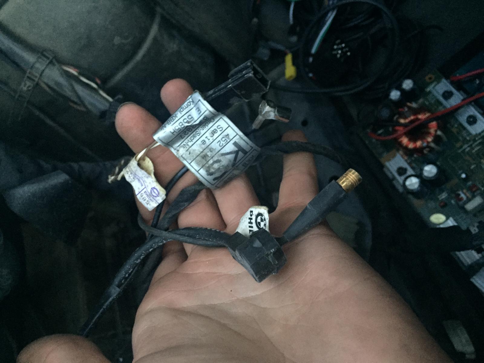 1. kuva: puhelimen datajohto X13318?, radion antenni ja gps-antennin johto (messinkinen)