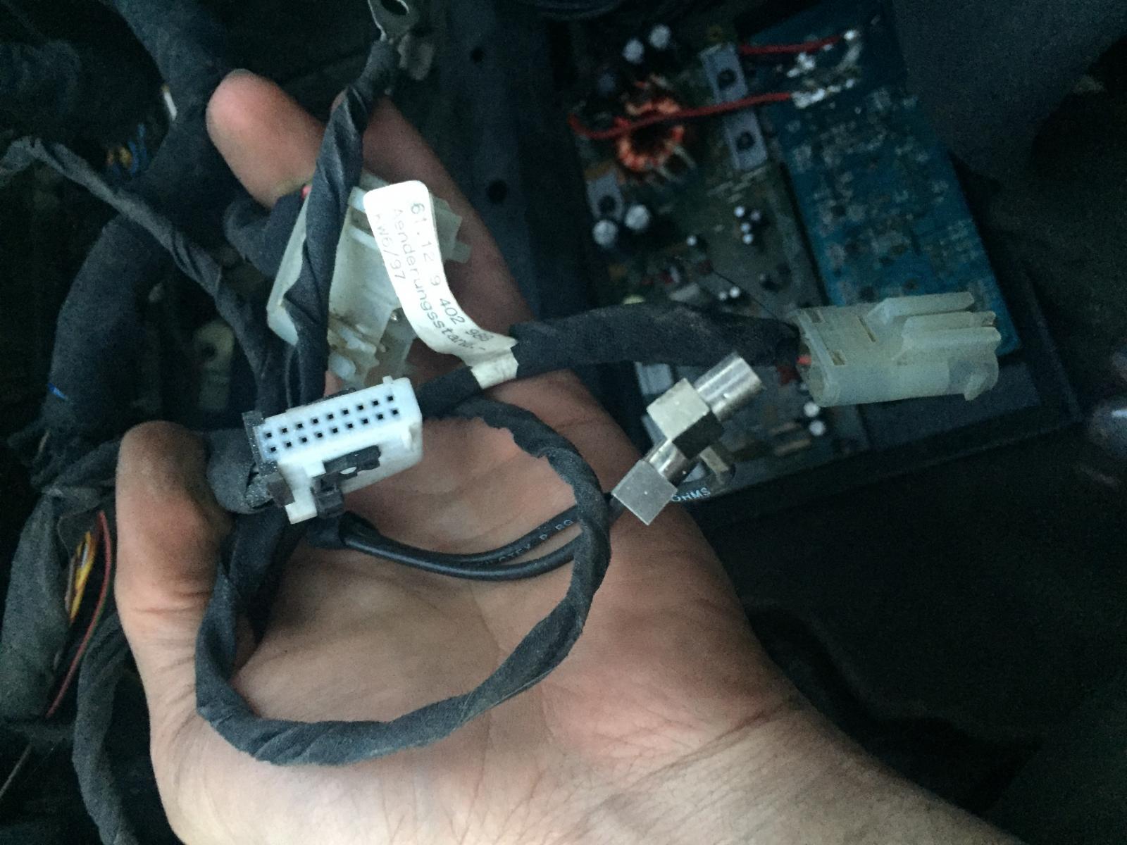 2. kuva: A/V-sisääntulo videomoduulille X18806 toinen pää keskikonsolissa ja navilaskurissa, tv-antennien johdot, cd-vaihtajan virransyöttöjohto ja olisiko takana navin/videomoduulin syöttöjohto