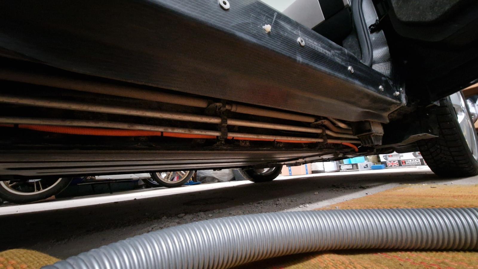 Alkuperäisestä suunnitelmasta poiketen tein tuon vaihtohomman omassa tallissa ilman nosturia. BMW asennusohjeesta poiketen kannattaa irrottaa sivuhelma kokonaan, saa rutkasti enemmän tilaa. Sen lisäksi irrotin edestä taaemman sisälokarin. Sitä auton alla olevaa "stiffening platea" ei tartte ainakaan BEV mallissa irrottaa.