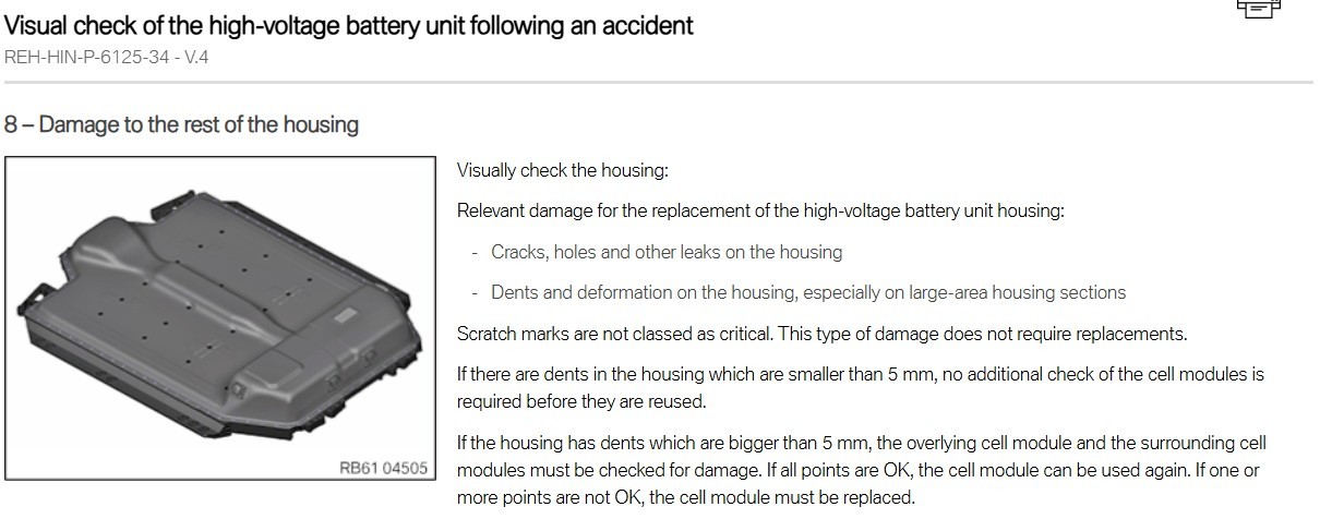 Tuo video on ihan höpöhöpöä. Ilmeisesti ko. keissi jossa auto on käynyt merkkarilla akkutarkastuksessa. Eivät sitten ole siellä osanneet lukea oikein ISTA:sta löytyvää akuntarkastusohjetta. Vai liekkö edes löytynyt sitä oikeaa tarkastusohjetta i4 osalta. Jokatapauksessa se raja painaumalle taitaa olla enemmän kuin 1mm verran.