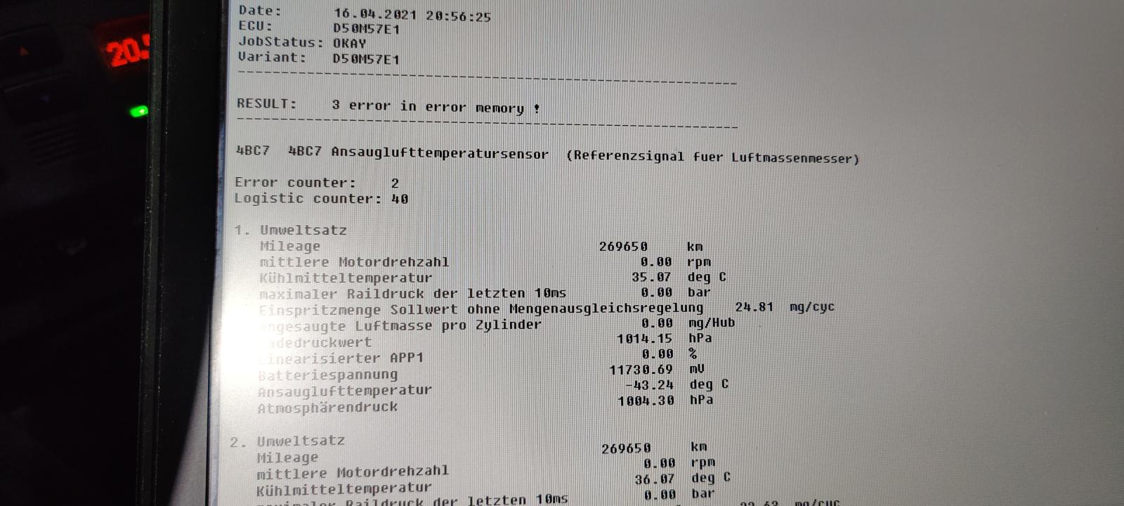 Mitä nämä vikakoodit kertovat ? Onko imuilman lämpötilaanturi rikki ?