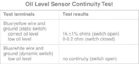 Autosta löytyy kaksi pinniä joiden selitys on "Oil level static" ja "Oil level dynamic".