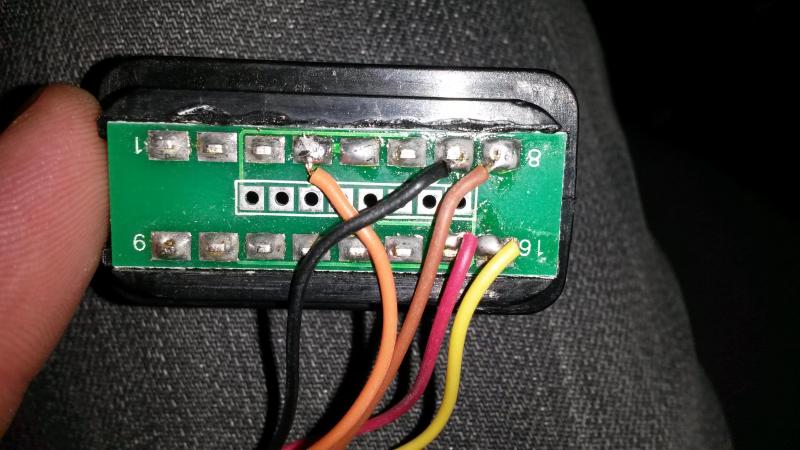 Ohessa kuva oman BMW compatible interface V6.5 mokkulan mukana tulleen OBD2 kaapelin kytkennät, joiden epäilen olevan väärät? Ei onnistu yhteyden muodostus. Kuvassa näkyvistä 5 johdosta punainen on ainakin tyhjällä paikalla kiinni. 6. johto on vihreä ja pois käytöstä kokonaan (ei kuvassa koska leikattu lyhyeksi).