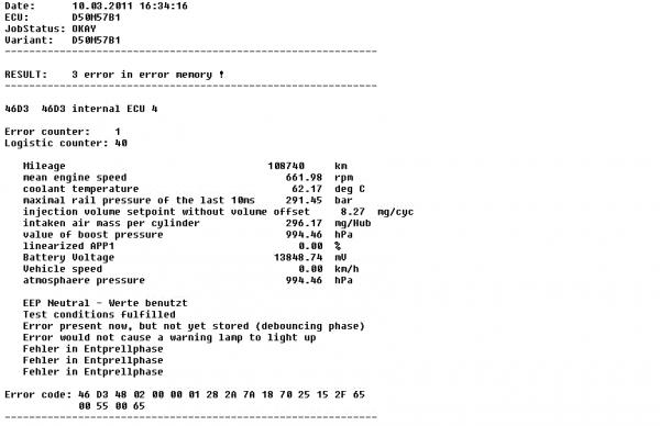 facelift mallin e46 330d sytyttää DDE valon ja nakkaa vikatilaan reippaammassa kiihdytyksessä ja muistiin jää seuraava koodi: