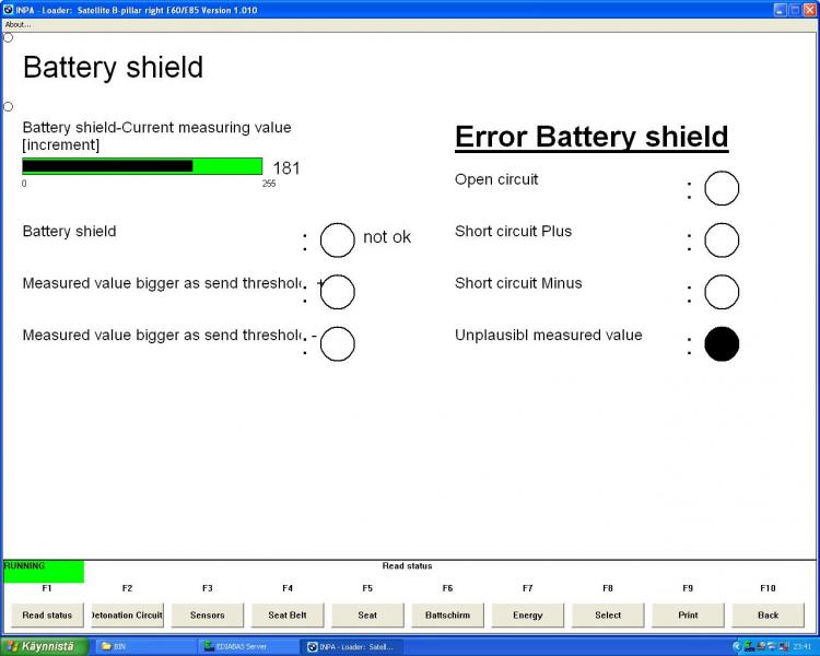 Airbagin ja turvavyön merkkivalo palaa, toi screeni on otettu inpalla B-pilarin airbagiltä, ni mitä mahtaa tarkoittaa tuo error battery shield????