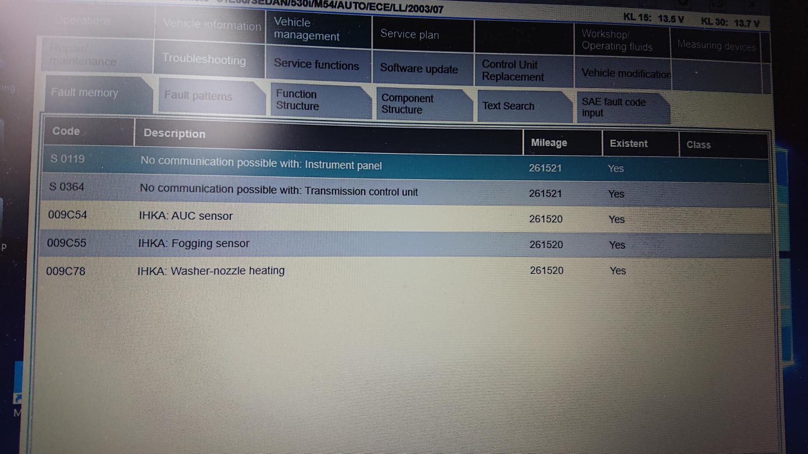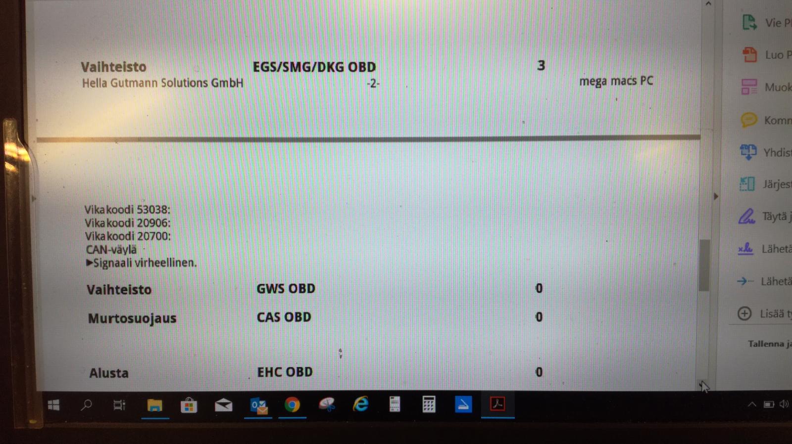 Edit: Unohtui mainita että, yhden vikakoodin vielä lykkäsi tuntien ja monien nollauksien jälkeen: 00A6CF JBE Auc Sensor. Voi olla tosin että johtuu vain kun alkoi virta loppumaan akusta, niin alkoi heittelemään ilmoille kaikennäköistä "uutta" vikaa.