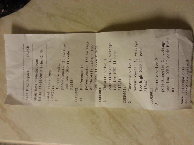 Ja mitään noista ei voi diagnosoida etänä. Voi auttaa toki, mutta ilman koodeja sekään ei onnistu.
