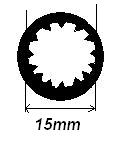 Elikkäs tommonen löytyy multa, se on 17 kannalla ja "urosnystyröitä ( )" löytyy 24 kpl, työntömitta on tallilla joten silmämääräisesti arvioituna se pulttiin menevä pää olisi se 15. Itsellä orggisalut & pultit ja se on tullut niiden mukana joten vois täsmätäkkin.