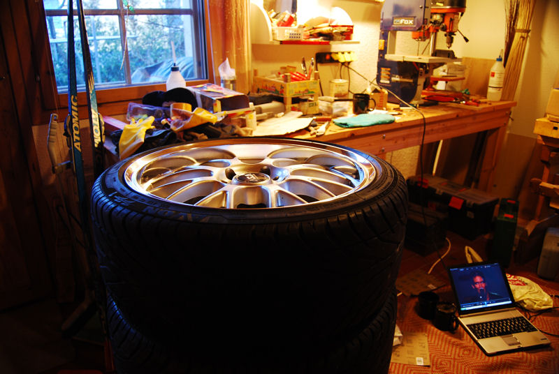 Muutamia sarjoja on tullut kiillotettua noita vanteita, ensin tosiaan Nitromorssilla lakka veks, sitten armotonta hiontaa, ite oon aloittamu noin 240 karkeudesta ja päätyen lopulta 2000 karkeuteen, sen perään rättilaikkaa + alumiinin kiillotusainetta, ja viimeiseksi autosol pintaan.