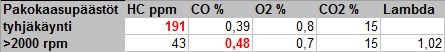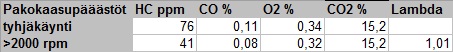 Tänään tuli katsastuksessa seuraavanlaiset päästöarvot: