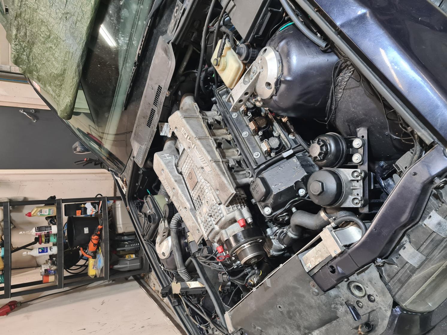 Mä hommailin tällässen mersun (oikeesti lysholm ja garretin vesi-ilma jäähdytin) twinscrew ahdin paketin, sähkömagneetti hihnapyörä, sähkönen bypass läppä ja sähkönen kaasuläppä. Kantee adapteri kalikat, hihnapyörän offset muutos ja muuta pientä niin eiköhänse ala toimimaan.