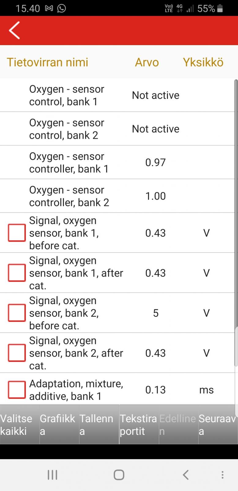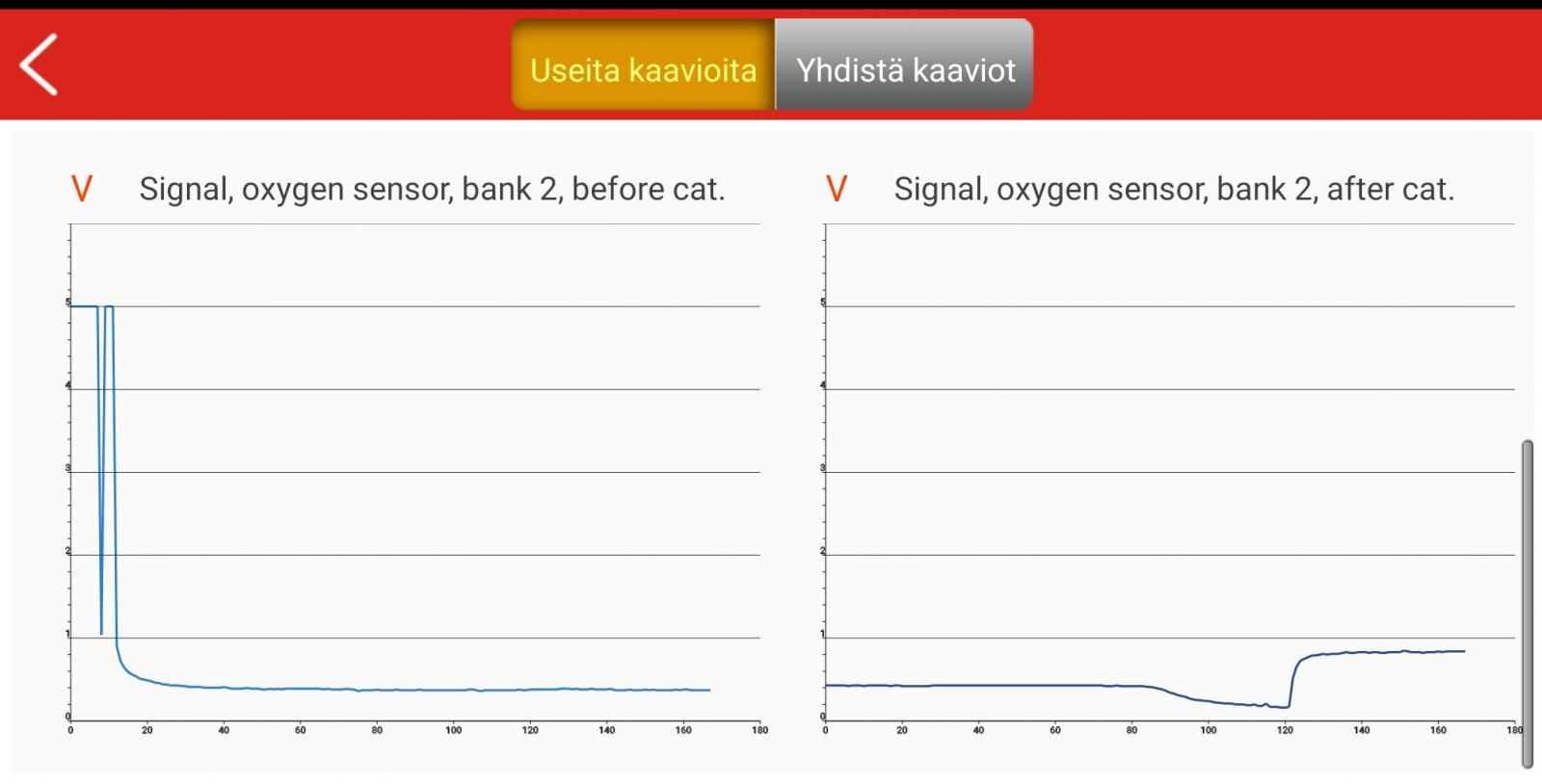 Kytkin pre-cat lambdat ristiin, ja livedata näytti edelleen, että bank 2 5V ennen käynnistystä.