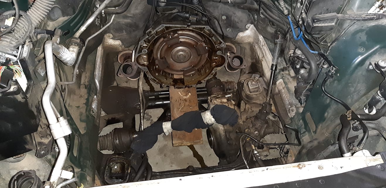 Uusi käytetty lohko tulossa männillä ilman kampiakselia.