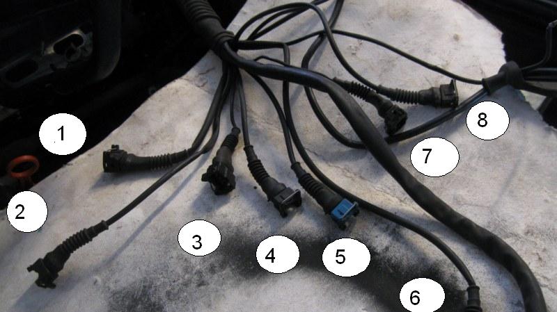 E30 M50 swap menossa ja nyt ois tuo johtosarja (E36 manuaali)makaamassa konehuoneessa. Ei ole vaan edellinen irrottaja kiireissään muistanut merkitä mikä liitin on irrotettu mistäkin. Ohessa havainnollistava kuva (toivottavasti auttaa) johon numeroitu liittimet. Nyt tartteis tietää mikä liitin tulee mihinkin.
