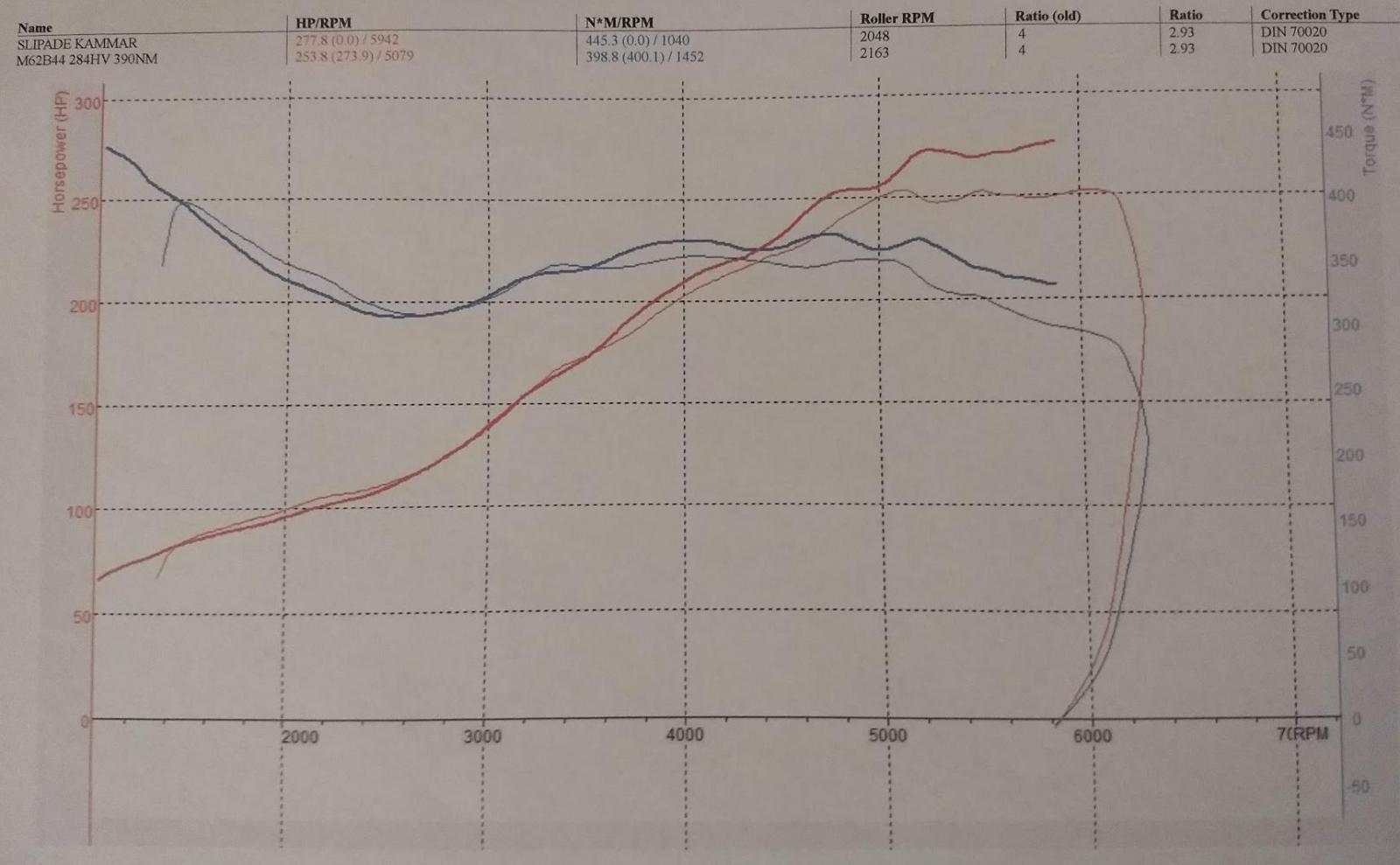 Noin +24hv navoilta mitattuna (277 vs 253hv) ja vääntöä myös enemmän uusilla nokilla, alapäästä menetettiin 3-4hv ja vähän vääntöä niinkuin oli luvattu. Vääntökäppyröitä ei ehkä kannata liikaa tulkita kun auto on vielä toistaiseksi automaatti ja momentinmuunnin tekee juttujaan varsinkin alakierroksilla. Keli toki tänään viileämpi kuin kesällä mutta melko lupaava parannus käppyröissä jokatapauksessa, tummalla värillä siis virinokat ja haalealla vakionokat.