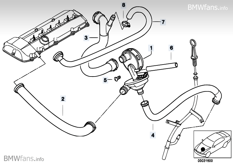 Aiheeseen liittyen, onko joku vaihtanut M54 3.0 litran pannussa noita huohotinjärjestelmän ylimpiä letkuja ( kuvassa osat 3 ja 7 )???
