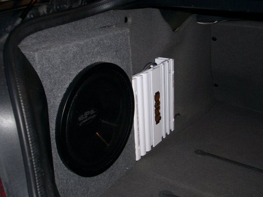 Basworxin pieni 10"sen kotelo sattui olemaan E39 Touringiin juuri sopivan kokoinen, jotta se kiilautui verhon rungon ja lattian väliin tiukasti kiinni ollen poissa edestä kun leveämpää penkin selkänojaa avataan tai lattialevyä nostetaan ylös. Ei ole vielä lähtenyt liikkeelle, edes 1,1 G sivuttaiskiihtyvyydessä