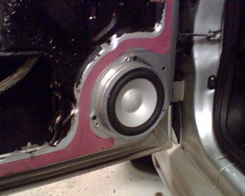 Ehdottomasti paras ratkaisu tuossa autossa on että ovipeltiin tehdään reikä. Sitten paksusta vanerista tehdään asennuslaippa kaiuttimelle ja se pultataan tiiviisti ovipeltiin kiinni. Sitten kaikki aukot oven sisäpellissä tukitaan esim juuri vanerilla tai ohuella alumiinilla. Sen jälkeen koko oven sisäpellin yli vaimennusmattoa esim vibroplast. Tietty oven ulkopeltikin vuorataan tuolla matolla ennen reikien tukkimista.