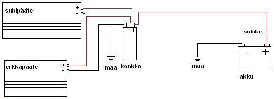 Joo elikkä tuli pari päivää sitten asennettua noi hifit valmiiksi.. Siellä on Toxicin jännitenäytöllinen konkka, jossa palaa koko ajan lukemat eli ei sammu itsestään ja on nyt syönyt akun tyhjäksi.. Mikäs nyt avuksi...? :think Kytkennät olen tehnyt näin:
