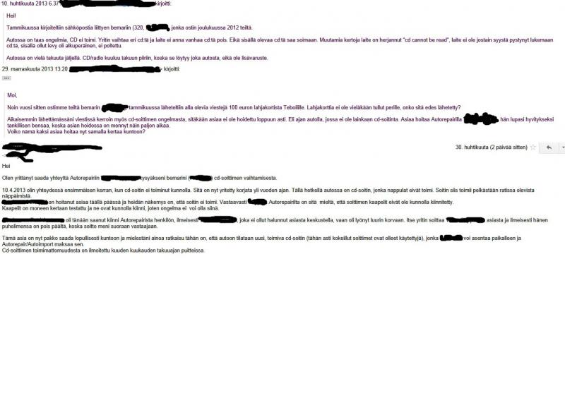 Omassa tapauksessa auton DVD rikkoutui ~4kk auton hankinnan jälkeen, autoliike otti tapauksesta sovitun takuun puitteissa kopin ja antoi työn Autorepairille joka käsittääkseni hoitaa liikkeen takuukorjauksia.