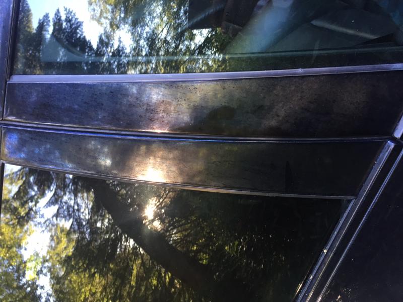 Käyttiksen high gloss ikkunalistat olivat ostettaessa aika karussa kunnossa (ks. kuva), eikä niitä saanut millään paremmaksi. En tiedä miten olivat tuohon kuntoon menneet, varmaan kesähelteillä ruiskittu liukkaria kuumenneiden listojen päälle tms.