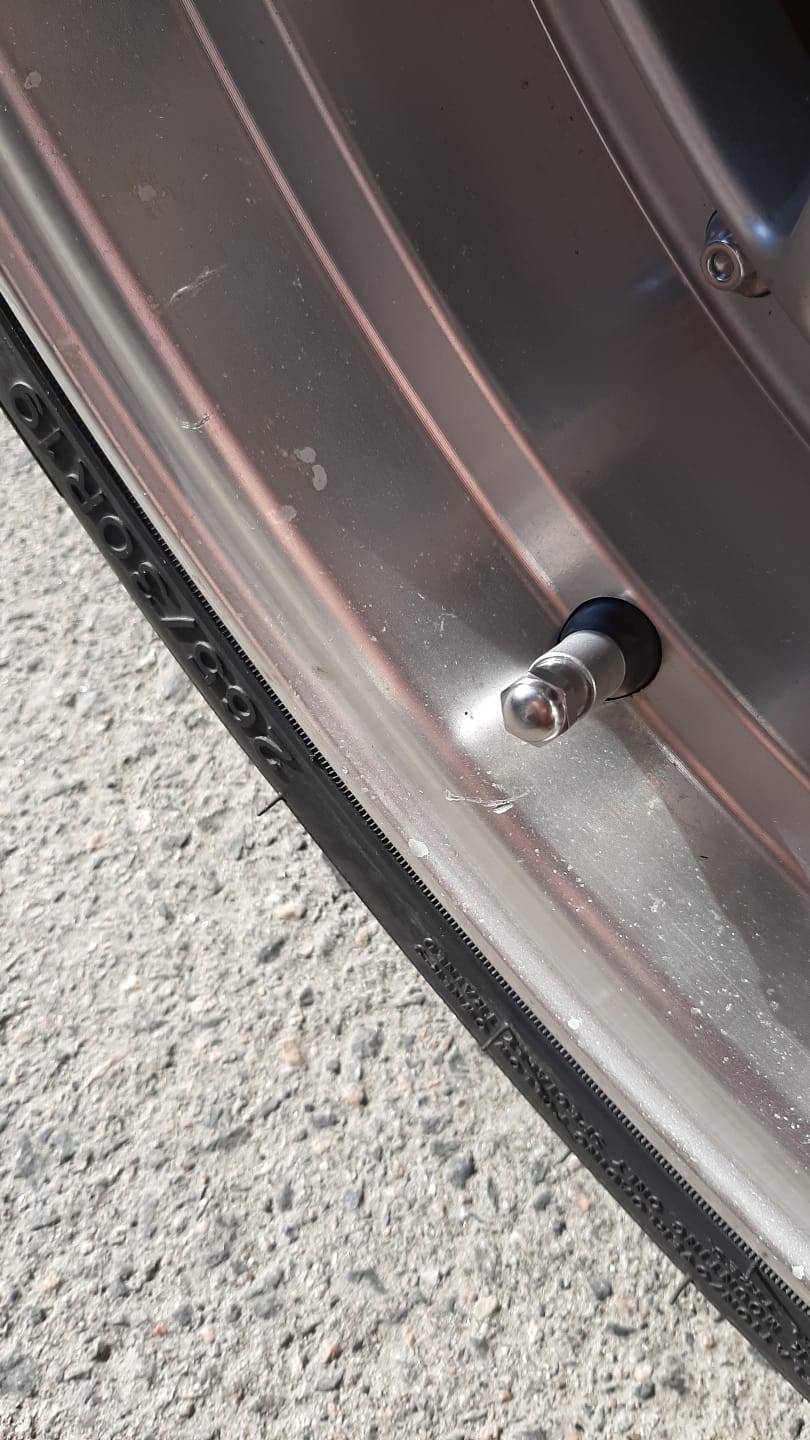Eukko soittaa, että ei nähny pajan pihassa vanteissa mitään poikkeavaa, mutta kotipihassa sitten löyti moiset jäljet toisesta vanteesta. Oisko ollu pajan pihassa "rokamat piilossa" eli vanteen tuo osa lähellä lokarinkaarta niin ei huomannut noita kun pyllisteli...